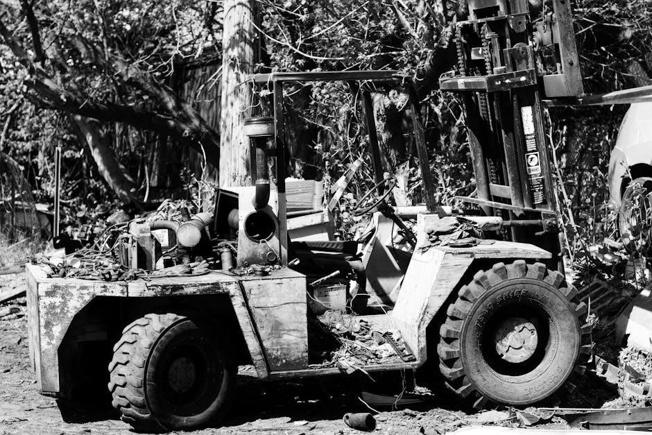 Always relieve hydraulic pressure before disconnecting any lines. Refer to the manual’s troubleshooting section for specific symptoms and their corresponding solutions. Having a readily available PDF ensures quick access to vital information, streamlining repairs and restoring optimal forklift performance and safety.